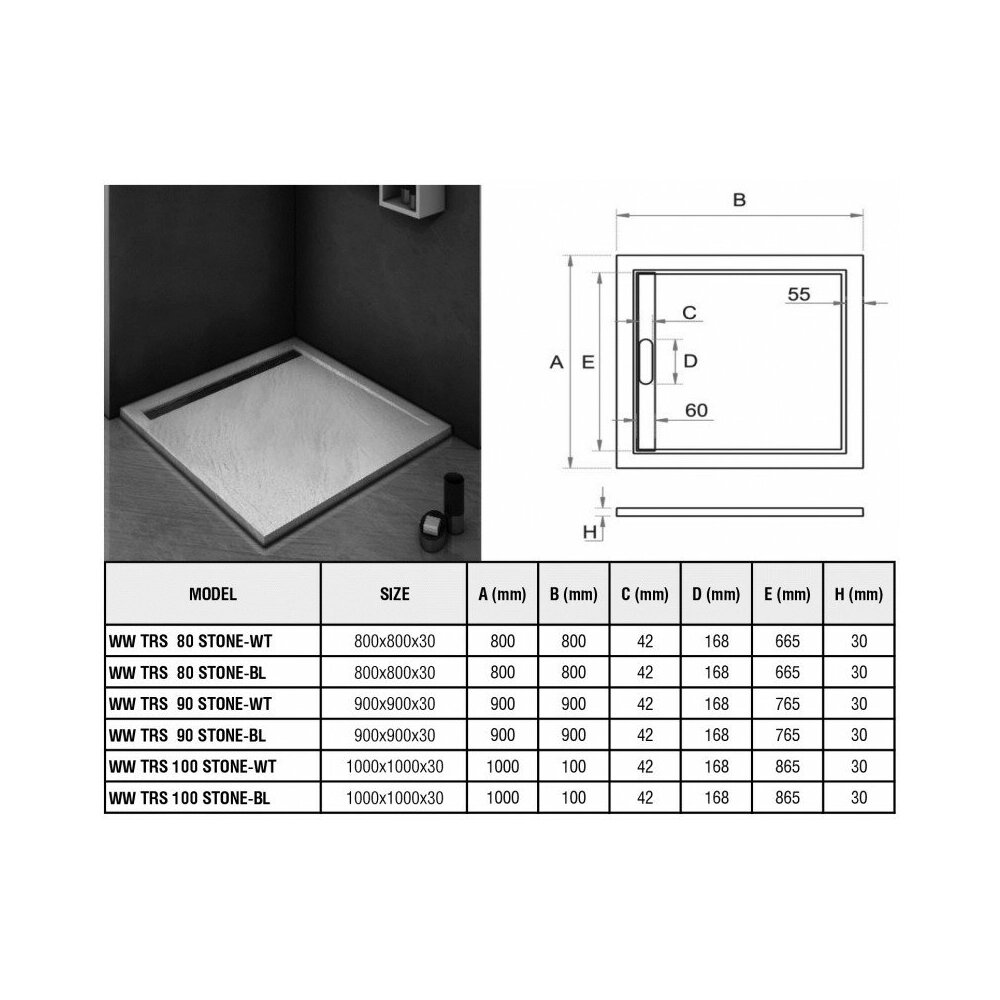 Душевой поддон WELTWASSER TRS STONE 100 x 90 белый слив