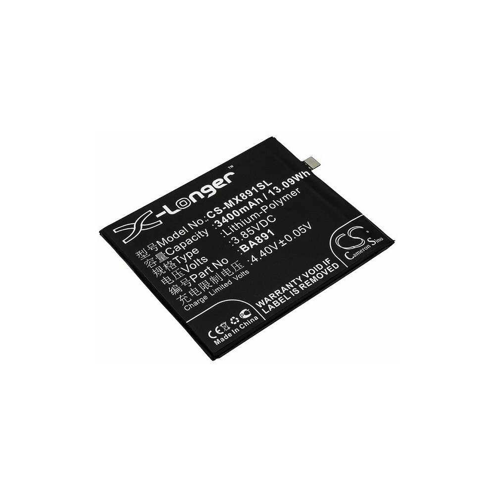 Аккумулятор (батарея) BA891 для сотового телефона Meizu 15 Plus. Li-polymer, 3400mAh, 3.85V, размеры: 78.46 x 66.66 x 3.40 mm, цвет черный . Совместимые модели: BA891