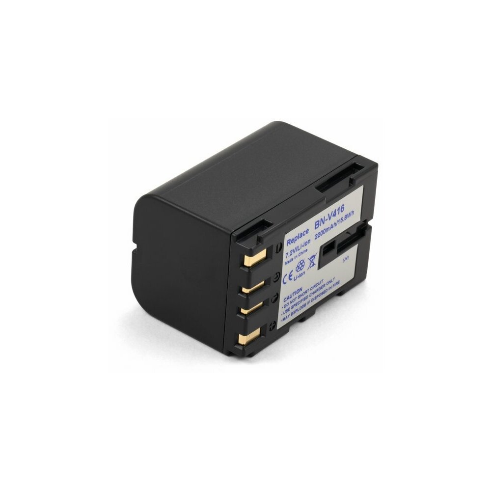 Усиленный аккумулятор (батарея) BN-V416, BN-V416U, BN-V428 для видеокамеры JVC CU-VH1, GR-33, 4000US, D, DV, DVL, DZ, HD, PD, VF, GV-DV, GY-DV, GY-HD, JY-HD, JY-VS серии. Li-ion, 2200mAh, 7.4V, цвет черный . Совместимые модели: BN-V408 BN-V408-H BN-V408U BN-V416 BN-V416-H BN-V416U BN-V428 BN-V428U BN-V438 BN-V438U PL416D.750