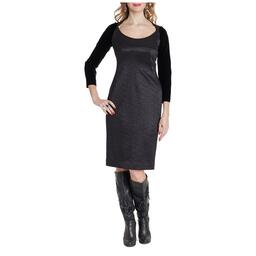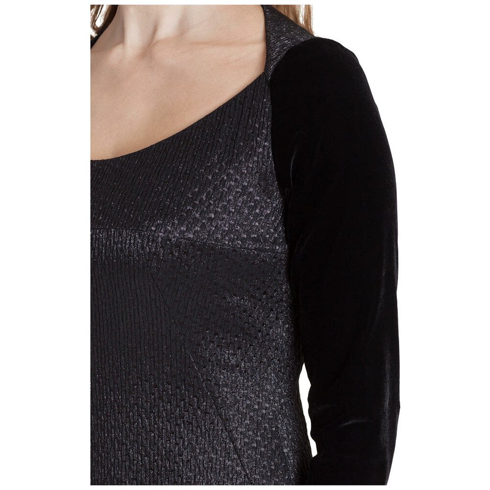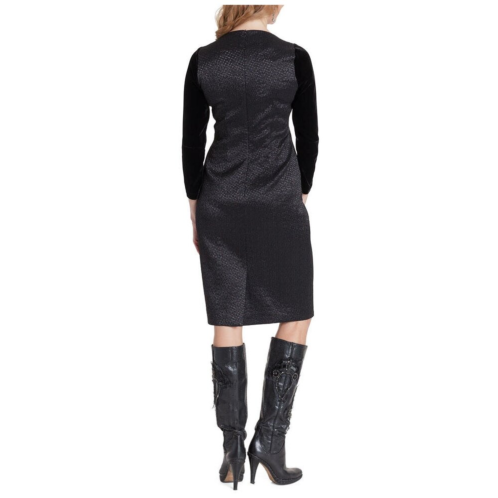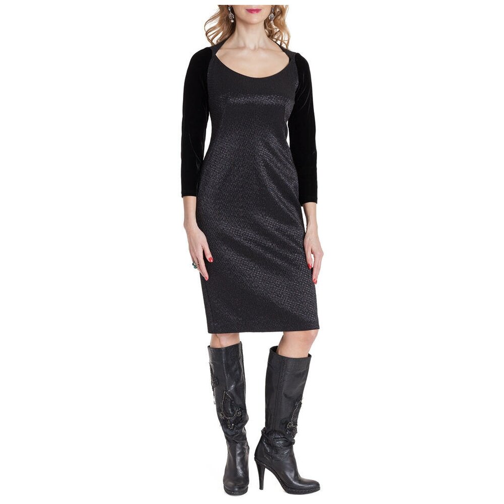 Платье карандаш из чёрного жаккарда, бархатный рукав, 46/48