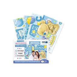 Ukid MARKET Набор из 4-х плакатов для фотозоны "С Днем Рождения!", голубой цвет