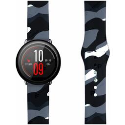 Ремешки серии Urban - созданы для активных людей, живущих в быстром темпе города, в этой серии использован популярный, модный принт "Камуфляж". Ремешок изготовлен из специального силикона повышенной прочности. Данный тип силикона применяется в пищевой промышленности, обладает всеми свойствами этого качественного материала, и не вызывает аллергии. Ремешок из такого материала комфортно сидит на руке, силикон плотный, гладкий и приятный на ощупь. Застёжка из нержавеющей стали надёжно фиксирует ремешок на запястье. На обхват запястья: 160–210 mm Размер: 22mm Подходит для Garmin, Samsung, Huawei, LG, Rolex, Xiaomi, Honor, Nokia и др.