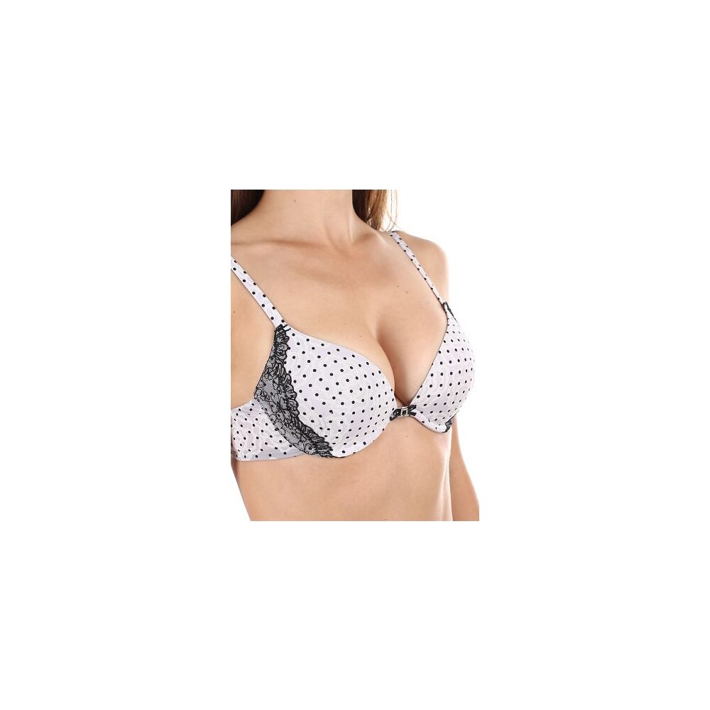 Бюстгальтер с формованными чашками, "пуш-ап" с гелем, чашки декорированы кружевом, атласный бантик.