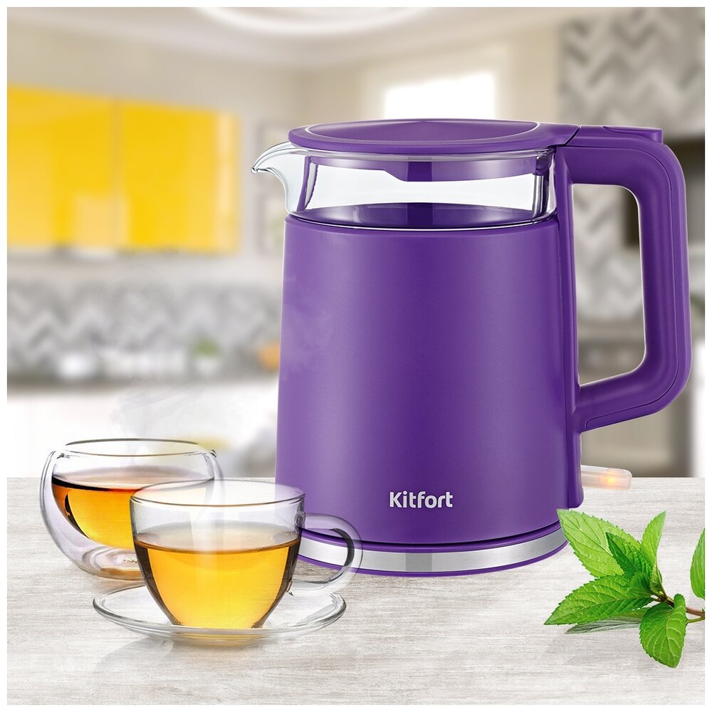 Мощный и вместительный чайник Kitfort КТ- 6124 отлично подойдёт для тёплых встреч с семьёй и друзьями. За один раз в чайнике можно вскипятить до 1,2 л воды. Этого хватит, чтобы приготовить горячие напитки на большую семью! Чайник имеет широкое горлышко и открывающуюся крышку, благодаря чему его быстро и удобно наполнять водой и чистить в случае необходимости. Чайник оснащён контроллером Strix. Он устраняет риски короткого замыкания и возгорания прибора. Обеспечивает защиту при закипании, при включении чайника без воды. Мерная шкала, расположенная под ручкой чайника позволяет легко следить за уровнем воды. В кнопку включения/выключения встроен индикатор нагрева. Украсьте вашу кухню ярким чайником и веселыми разговорами за чашечкой чая! Данная модель КТ-6124 легко впишется в любой интерьер благодаря разнообразной цветовой гамме, в которой представлено устройство!