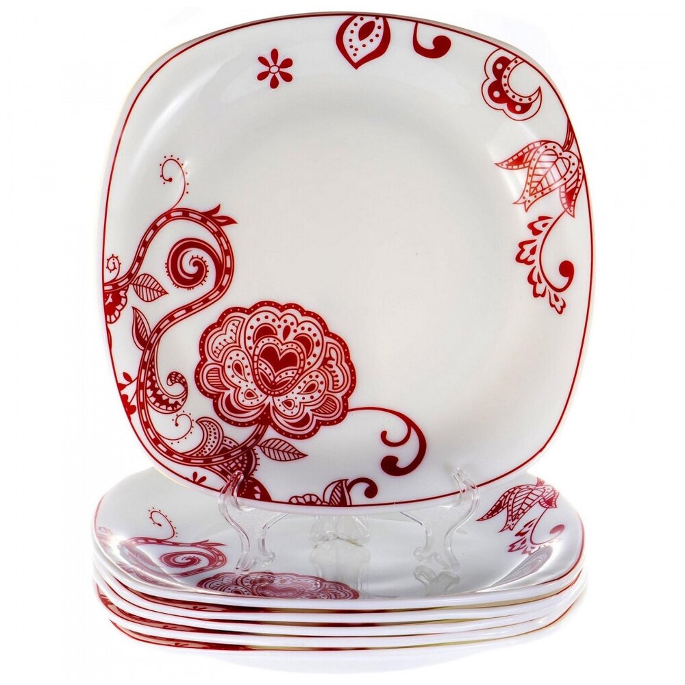 Набор тарелок Olaff "Красные цветы", 6 штук (арт JY-S-SFP105-06)