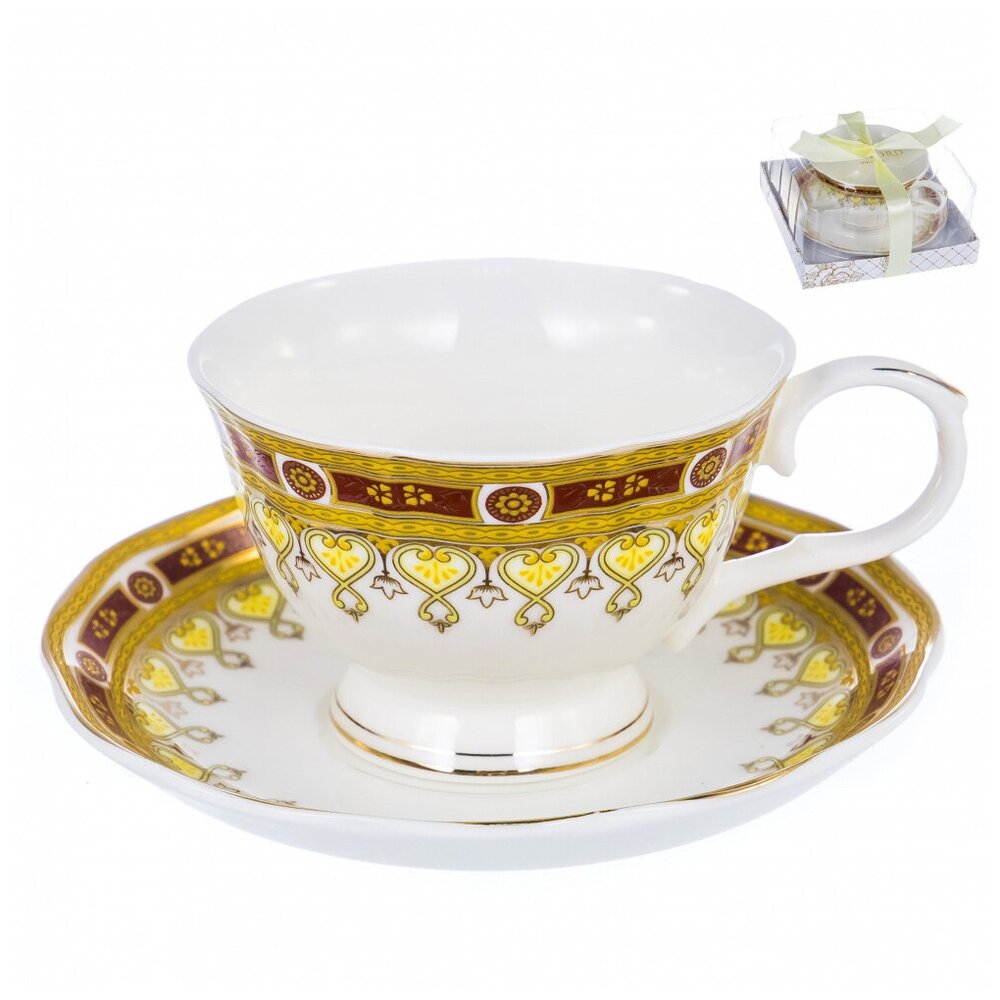 Паллада, набор чайный (2) чашка 220 мл + блюдце, new bone china, декор - белый с золотом, подарочная упаковка pvc с бантом