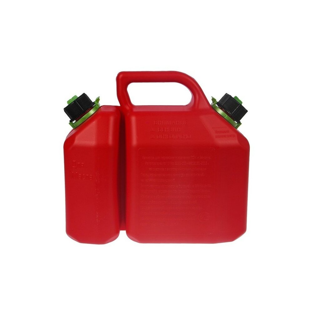 Универсальная комбинированная канистра из высокопрочного пластика для ГСМ 6 л и для масла 2,5 л. Наливной носик расположен внутри канистры. Крышка с защитой от случайного открытия.
