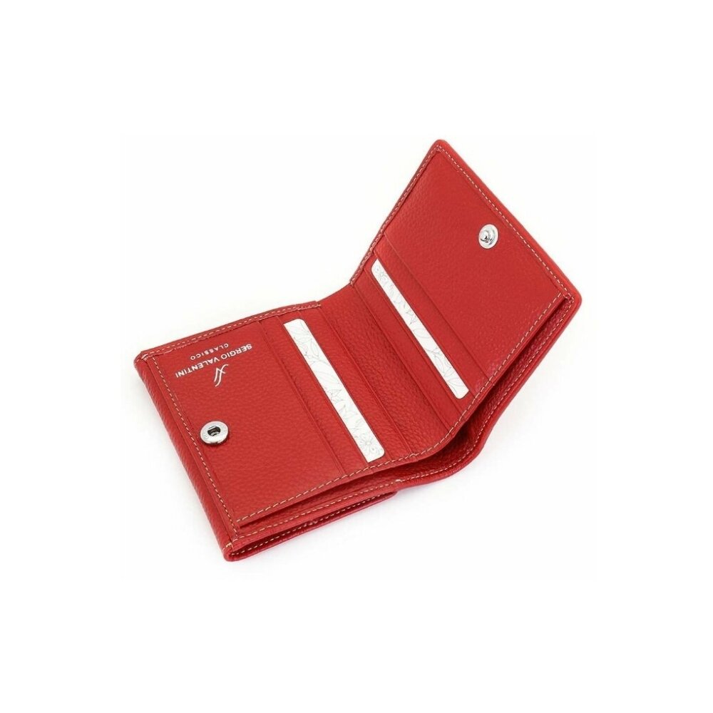 Женское кожаное портмоне от Sergio Valentini. Закрывается на кнопку. Имеет два отделения для купюр и 8 кармашков для пластиковых карт. Снаружи отделение для монет, закрывающееся клапаном с кнопкой.