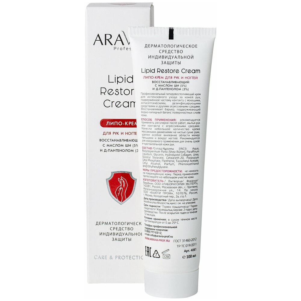 ARAVIA Professional Липо-крем для рук и ногтей восстанавливающий Lipid Restore Cream с маслом ши и д-пантенолом, 100 мл