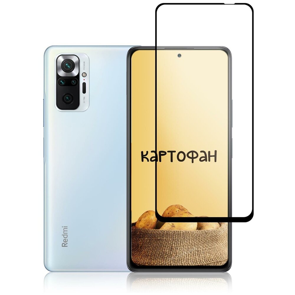 Прозрачное защитное стекло картофан с черной рамкой для Xiaomi Redmi Note 10 Pro (Сяоми / Ксиаоми Редми Ноут 10 Про), силиконовая клеевая основа