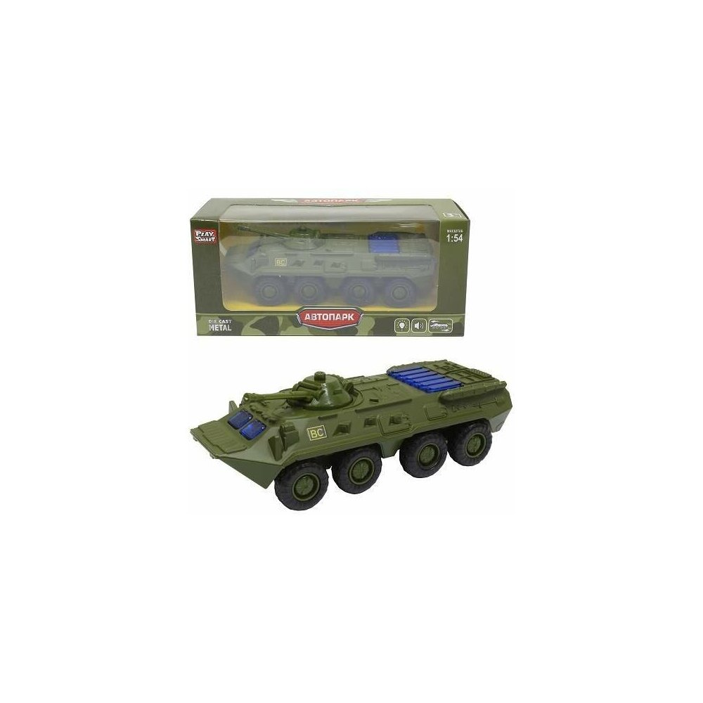 Play Smart 1:54 инерционный металлический танк БТР-80, свет, звук, 17x8x6,5см