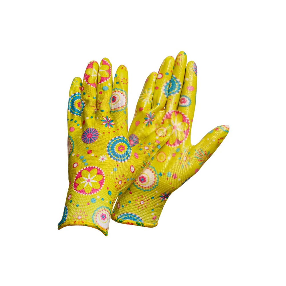 Красивые и удобные садовые перчатки из полиэстера с покрытием из нитрила для защиты женских ручек. Защитные свойства ТР ТС: Ми, Мп Полная длина - 23-25 см (в зависимости от размера) Вес пары - 32 грамма.