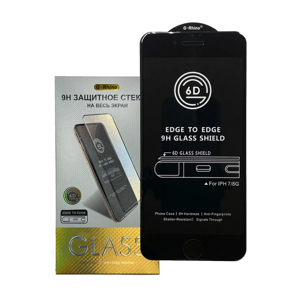 Стекло iPhone 8 6D RH в упаковке (черная рамка), набор 2 шт