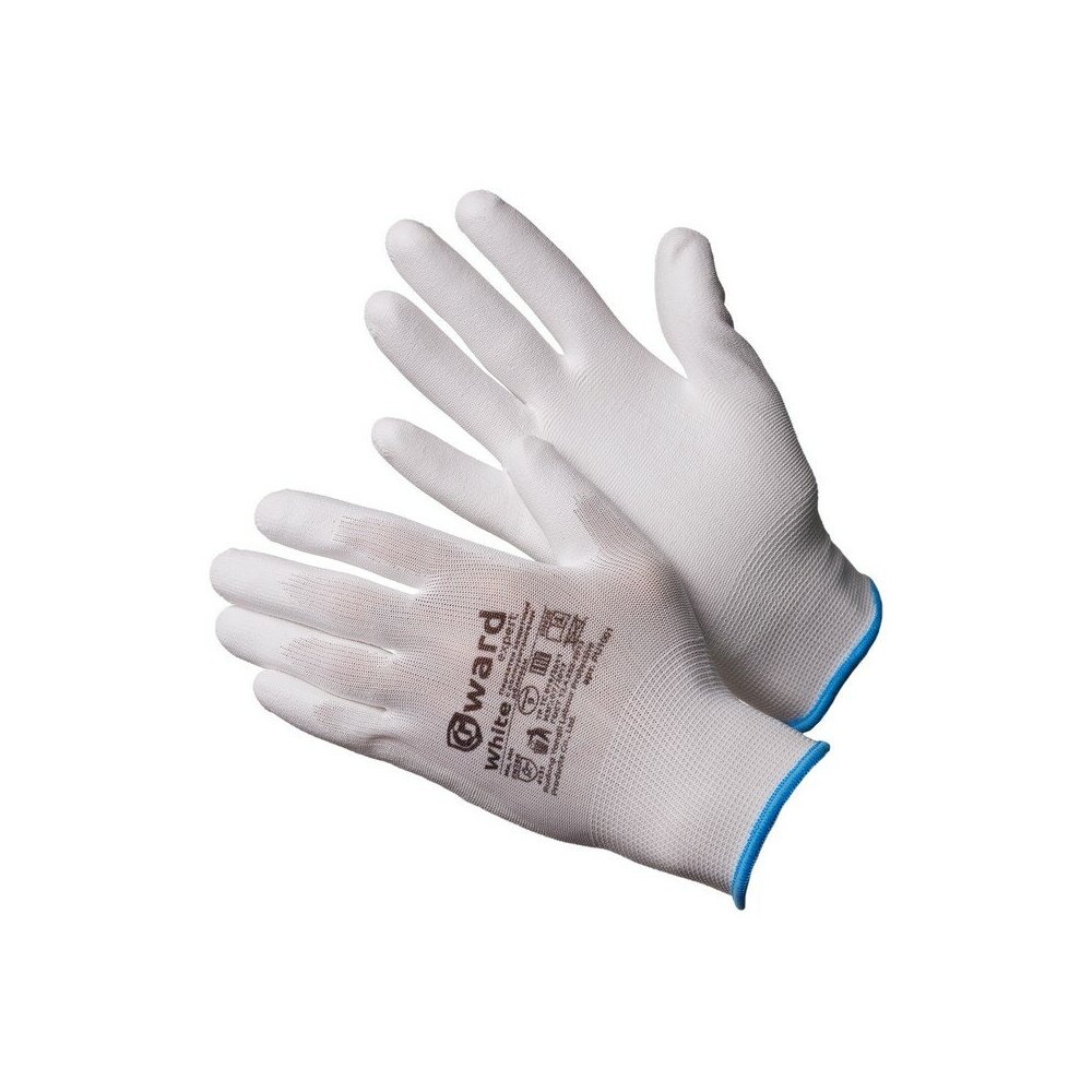 Нейлоновые перчатки белого цвета, покрытые полиуретаном белого цвета. Бесшовная основа 13го класса вязки прекрасно вентилируется и не оставляет ворсинок. Универсальны, применяются для любых механических работ. Тонкое полиуретановое покрытие одновременно очень прочное и чувствительное. Анатомическая форма перчатки снижает усталость рук при работе. Высокие показатели к истирательным и разрывным нагрузкам. Полиуретановое покрытие дает великолепную тактильную чувствительность Полиуретан является гипоаллергенным и рекомендуется при работе в пищевой промышленности. Отсутствует эффект набухания покрытия и его отслаивания при работе с промасленными поверхностями. Хороший воздухообмен - высокий комфорт в работе. Двойной оверлок с латексным кольцом обеспечивает превосходную фиксацию перчатки на запястье. Цветная индикация размера по оверлоку. Защитные свойства ТР ТС: Ми, Мп Полная длина - 23-27 см (в зависимости от размера) Вес пары - 23-29 грамм (в зависимости от размера)