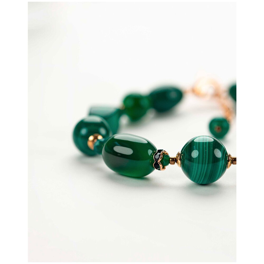 Браслет трехрядный из натурального камня от дизайнера Diana Savitskaya - Найроби - из малахита и агата, 18-23 см