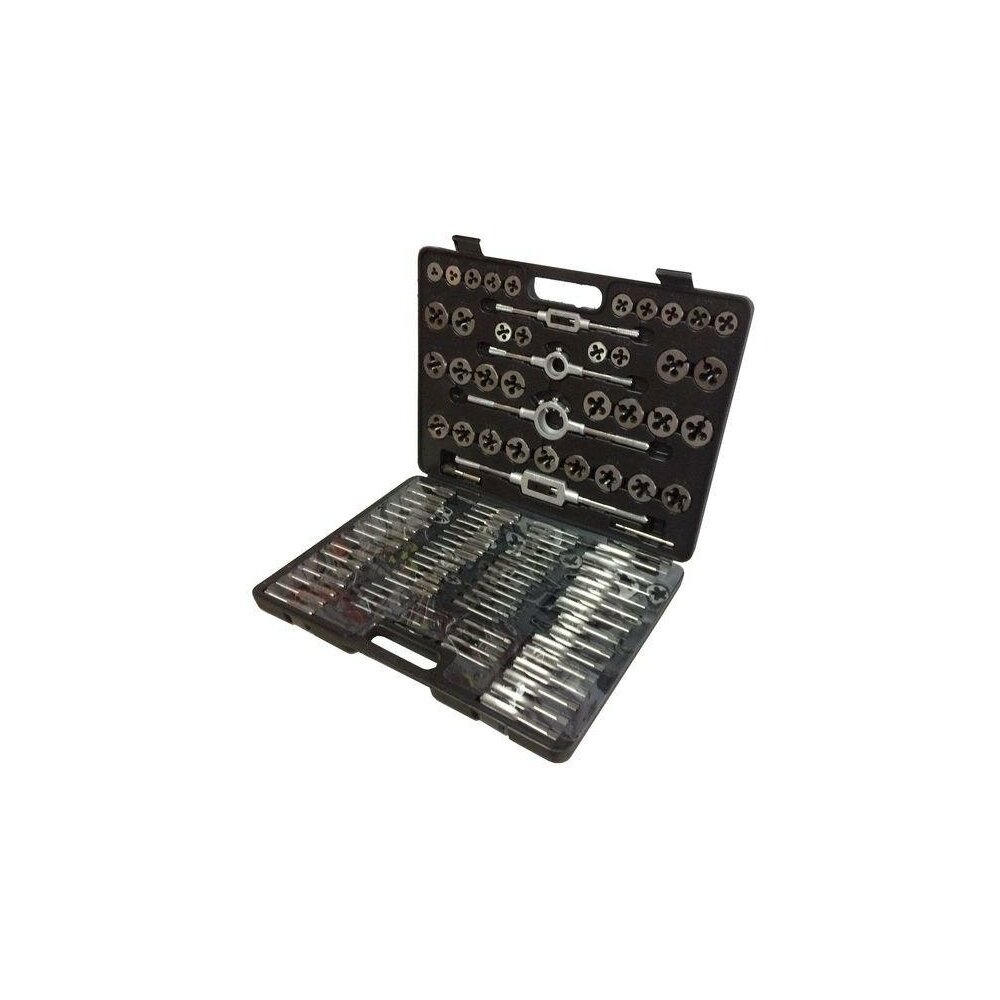 - Подробная комплектация - 35 метчиков и 35 плашек: M2x0.4, M3x0.5, M4x0.7, M5x0.8, M6x0.75, M6x1.0, M7x0.75, M7x1.0, M8x0.75, M8x1.0, M8x1.25, M9x0.75, M9x1.0, M9x1.25, M10x0.75, M10x1.0, M10x1.25, M10x1.5, M11x0.75, M11x1.0, M11x1.25, M11x1.5, M12x0.75, M12x1.0 M12x1.25, M12x1.5, M12x1.75, M14x1.0, M14x1.25, M14x1.5, M14x2.0, M16x1.0, M16x1.5, M16x2.0, M18x1.5;<br/> - 2 плашкодержателя: ⌀25 мм, ⌀38 мм;<br/> - 2 метчикодержателя: M3-M12, M6-M20;<br/> - метчикодержатель торцевой.