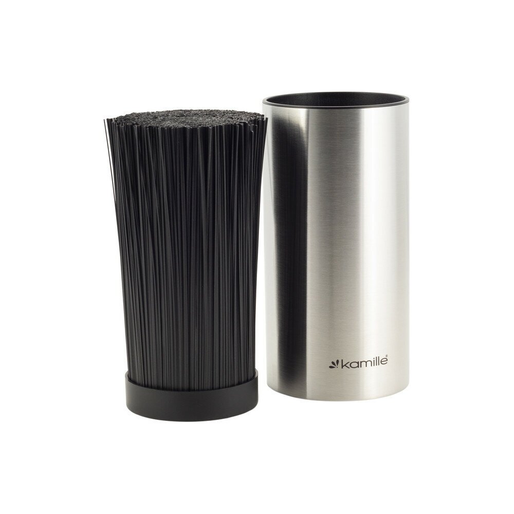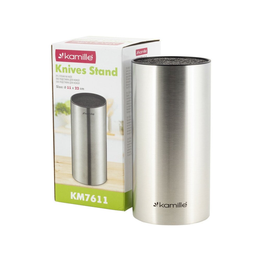 Подставка для ножей позволяет максимально бережно сохранять ножи. Внутри подставки расположены полипропиленовые разделители, благодаря чему вставить в нее нож можно любым образом. Подставка подходит как для обычных металлических, так и для керамических ножей. Подставка для ножей 11х11х22 см. с наполнителем Kamille KM-7611 Материал: ПП с нержавеющей сталью Размеры: 11х11х22 см. Форма: цилиндрическая Особенности: Легко чистится и не вредит лезвиям. Для ножей не длиннее 22 см. Пластиковый наполнитель вынимается, можно мыть в посудомоечной машине.