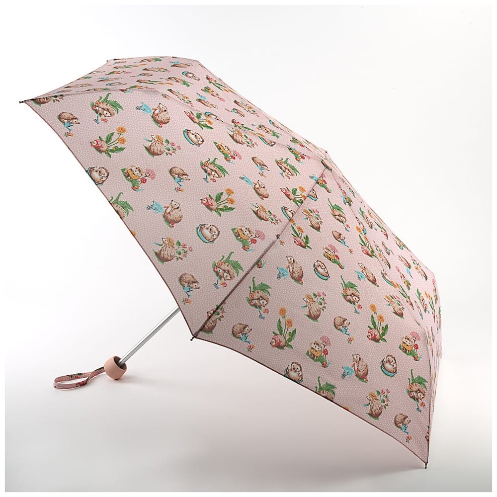 Откройте для себя мир маленьких благополучных ёжиков. Трогательные садоводы, грибники, малыши в канотье и в косыночках – игра в уютную наивность, которая смягчает окружающий мир. Адресат у этого аксессуара любой: и подросток, и девушка, и взрослая женщина. И чем старше его обладательница, тем более необычный образ она может создать. К тому же пастельно-розовый цвет купола визуально осветляет лицо. Каркас имеет ветроустойчивую конструкцию. В выемку удобной ручки заправляются концы спиц, когда зонт закрыт. Имя дизайнера на ручке и на чехле составляют ансамбль милых, но статусных подробностей.