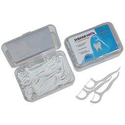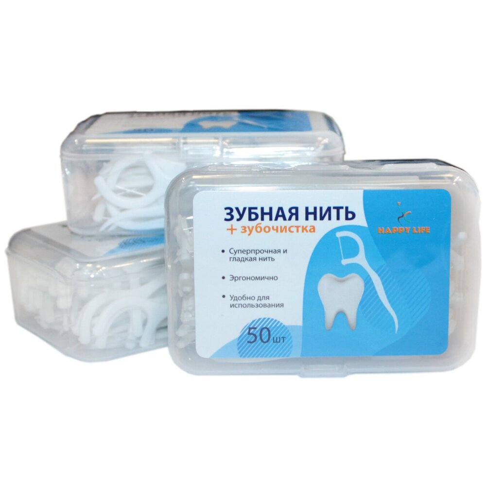 Зубная нить с зубочисткой Happy Life белая, 50 шт