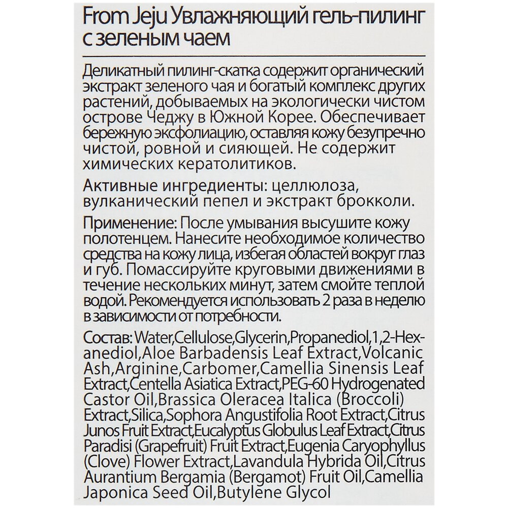 Деликатный пилинг-скатка содержит органический экстракт зелёного чая и богатый комплекс других растений, добываемых на экологически чистом острове Чеджу в Южной Корее. Обеспечивает бережную эксфолиацию, оставляя кожу безупречно чистой, ровной и сияющей. Не содержит химических кератолитиков.<p>Активные ингредиенты: целлюлоза, вулканический пепел и экстракт брокколи.</p><p>Применение: После умывания высушите кожу полотенцем. Нанесите необходимое количество средства на кожу лица, избегая областей вокруг глаз и губ. Помассируйте круговыми движениями в течение нескольких минут, затем смойте тёплой водой.</p>