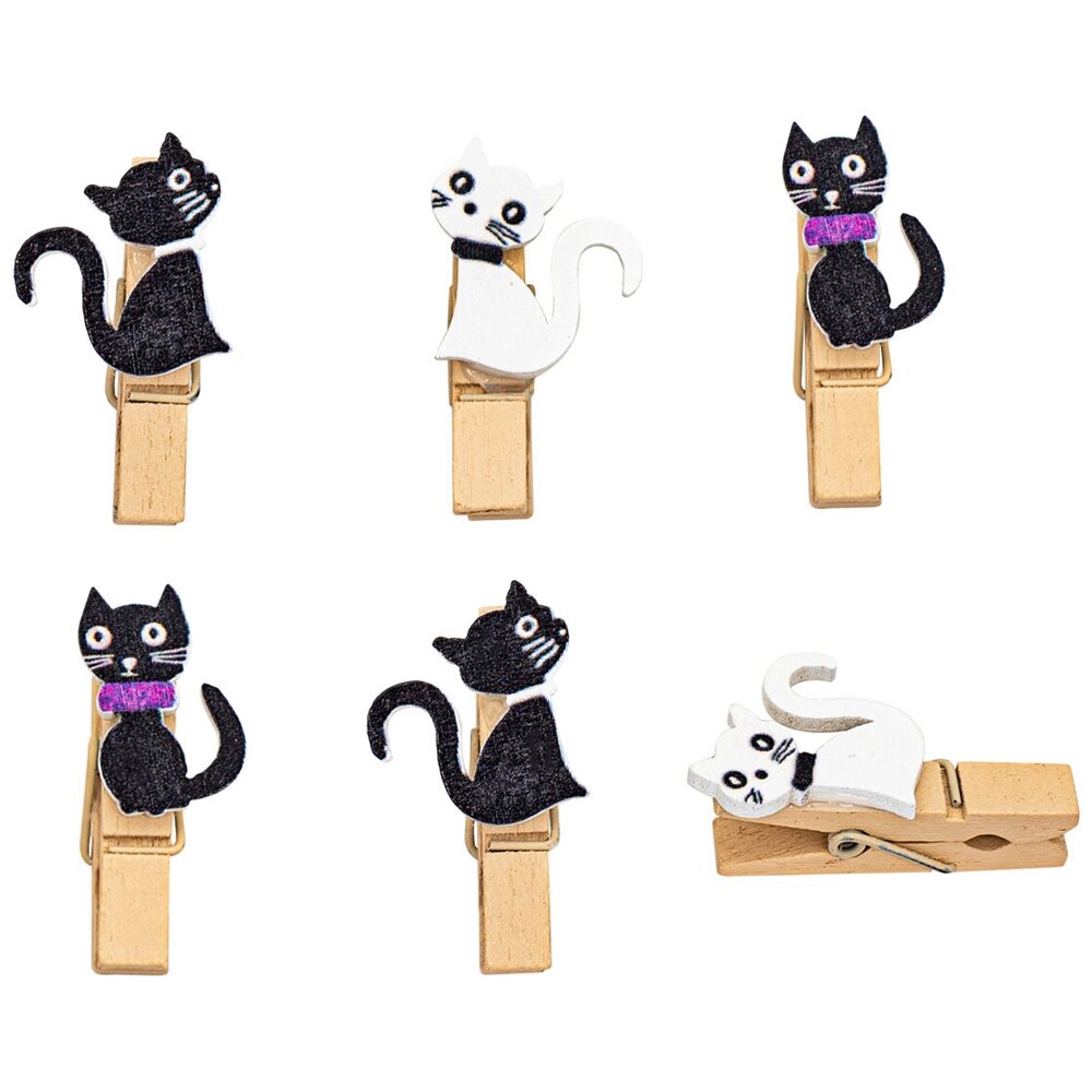 Деревянные мини-прищепки с забавными раскрашенными фигурками 'Кошечки' – оригинальная идея для декорирования, создания поделок. Прищепками легко пользоваться, их можно доверить даже детям. Изготовлены из безопасных материалов. В упаковке 6 штук. Несколько идей: – закрепите с помощью прищепок памятные снимки или открытки на декоративном панно; – украсьте букет цветов, цветочную корзину и другие флористические композиции; – оформите мини-прищепками открытку в технике скрапбукинга; – используйте для создания декоративных миниатюр или детской игры; – декорируйте подарочный пакет.