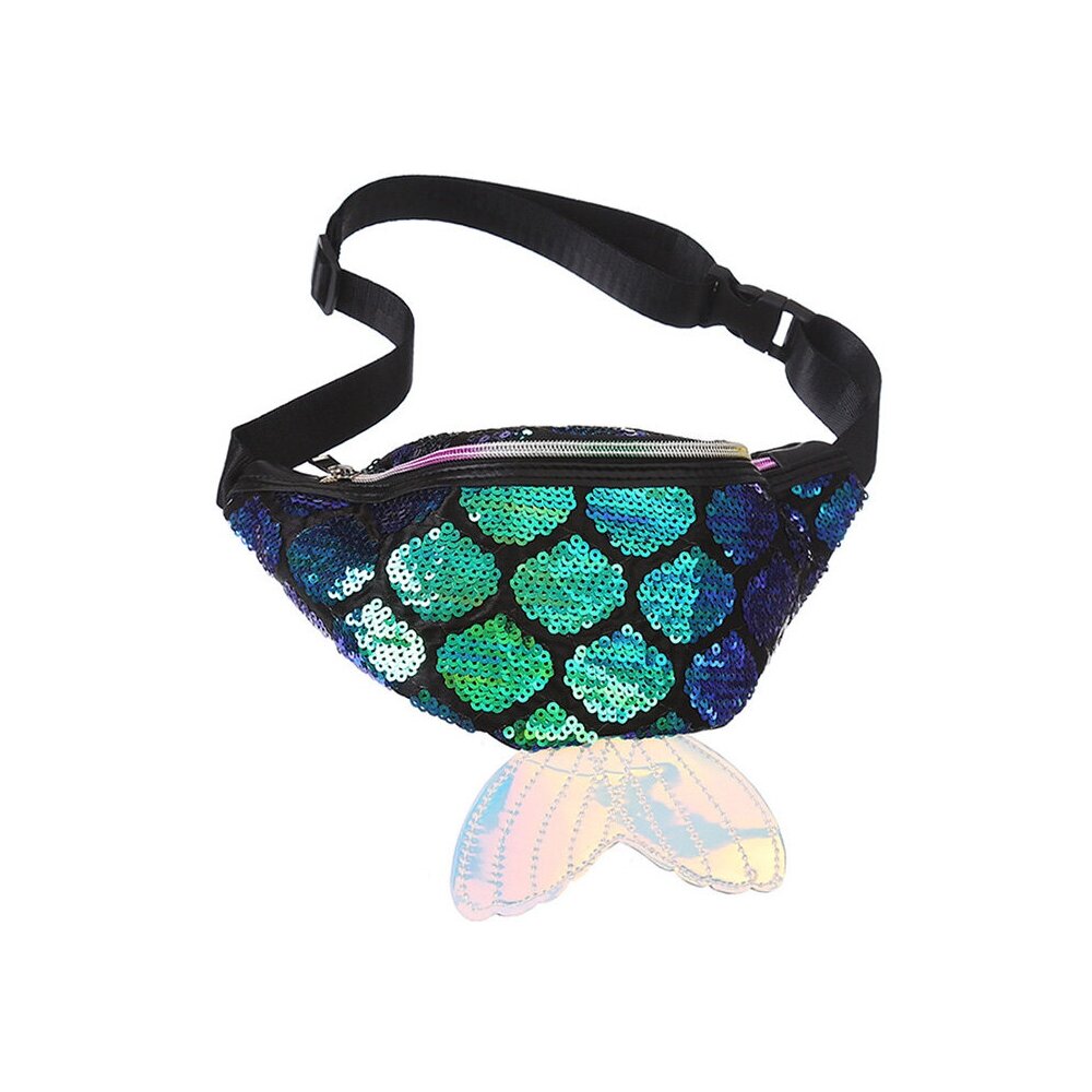 Милая поясная сумочка с хвостиком Русалочки и переливающимися пайетками гармонично смотрится на девочках любых возрастов! У сумочки одно большое отделение на молнии для самых нужных вещей.