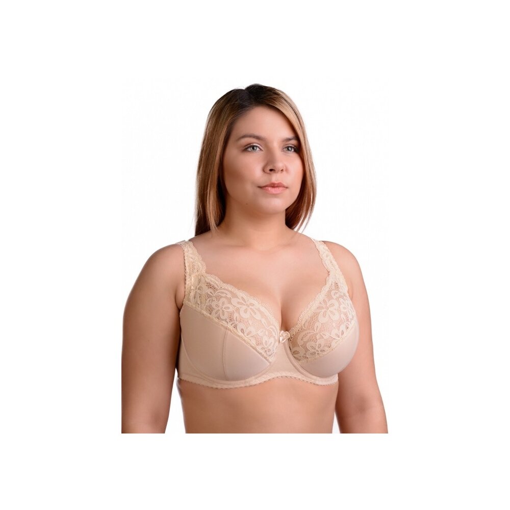 Удобный бюстгальтер на каждый день, комбинированная чашка из эластичного кружева и трикотажного полотна, нижняя часть чашки на поролоне, дублированная хлопковым полотном, на каркасах. Для дополнительного комфорта в носке боковые части пояса усилены стержнями.