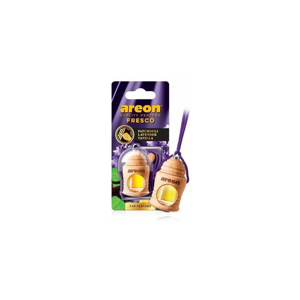 Ароматизатор AREON FRESCO - это деревянный бочонок со стеклянным сосудом внутри, наполненным ароматической жидкостью, который будет стильно смотреться в вашем авто.