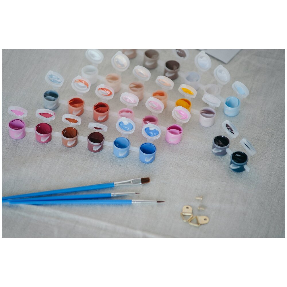 Картина по номерам на холсте 40х50 - это набор для раскрашивания по номерам акриловыми красками на холсте на подрамнике. Каждая краска имеет специальный номер, соответствующий номеру на холсте. Нужно аккуратно нанести необходимую краску на отмеченный для нее участок картины по номерам. Таким образом, шаг за шагом у вас получится собственная картина по номерам. С помощью этого набора вы можете воплотить свою мечту стать художником в жизнь и стать создателем прекрасных картин! Вы получите истинное удовольствие от погружения в процесс творчества, и созданные своими руками картины по номерам украсят интерьер вашего дома или станут прекрасным подарком. Набор подходит для детей и взрослых. В набор входит: - холст на подрамнике с нанесенным рисунком, контрольный лист с контурным рисунком, набор акриловых красок на водной основе, 3 кисти, крепление для готовой картины.