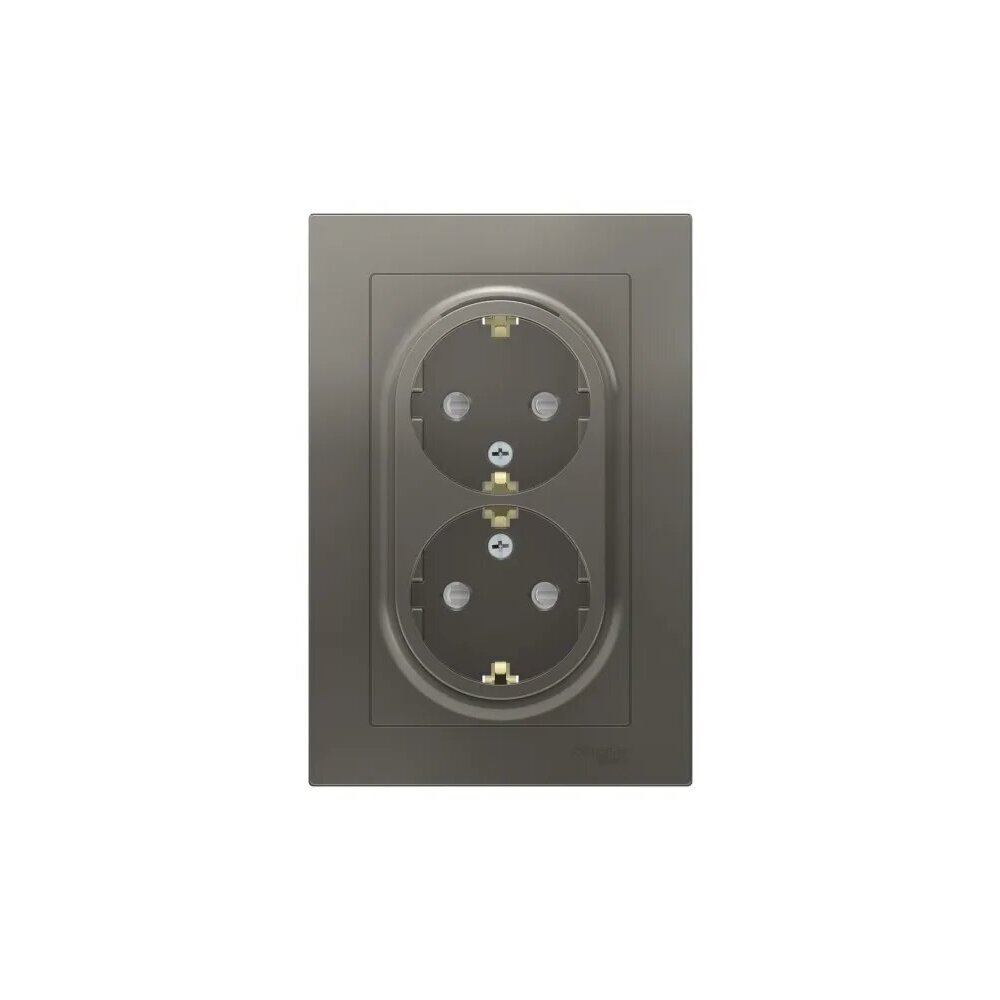 SE AtlasDesign Сталь Розетка с/з двойная, со шторками, 16А, в сборе