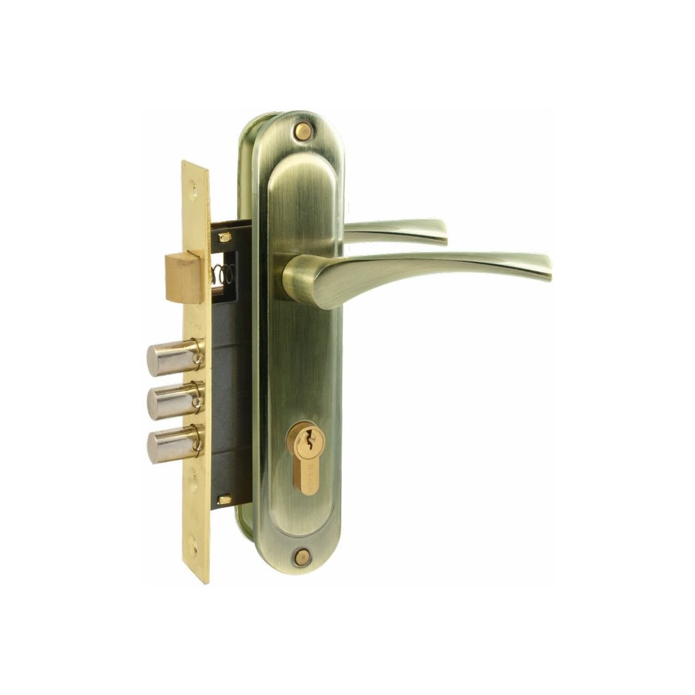 Комплект замка предназначен для установки в деревянные входные двери. В комплект входят 2 ручки на планке, корпус замка, ответная планка, цилиндровый механизм и 5 ключей. Межосевое расстояние 61,5 мм. Комплект универсальный, можно устанавливать на двери левого и правого типа открывания. Ручки на планке - сталь, алюминий, корпус стальной, механизм из закаленной стали. Гальваническое многослойное покрытие лицевых деталей, корпус замка имеет защитное антикоррозийное напыление. Гарантия на работу изделия 1 год.