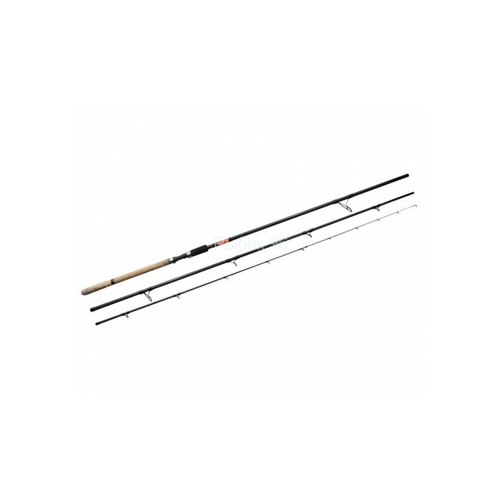 Вес: 345 г Длина: 4.2 м Транспортировочная длина: 147 см Диаметр первого пропускного кольца: 30 мм Количество секций: 3+3 Тест: 42-180 г Материал бланка: Графит (карбон) Материал рукоятки: Пробка Посадочный диаметр вершины: 2.7 мм Строй: Быстрый Нельзя сказать, что дальность заброса – главное в рыбалке, но иногда результат зависит от нее напрямую. Именно для таких случаев создано это удилище. Оно в состоянии выполнять забросы более чем на 100 м, и является прекрасным инструментом для ловли на крупных реках и водохранилищах. Также его можно использовать для ловли карпа на больших водоемах с помощью кормушек The Method. Оптимальный вес кормушек составляет 40–130 г. Удилище обладает быстрым строем и мощной комлевой частью, но при этом довольно вязкое, что дает возможность уверено вываживать крупную рыбу, не переживая за сохранность поводка. Комплектуется тремя вершинами с посадочным диаметром 2,8 мм номиналом 1,5, 2,5 и 4 унции.