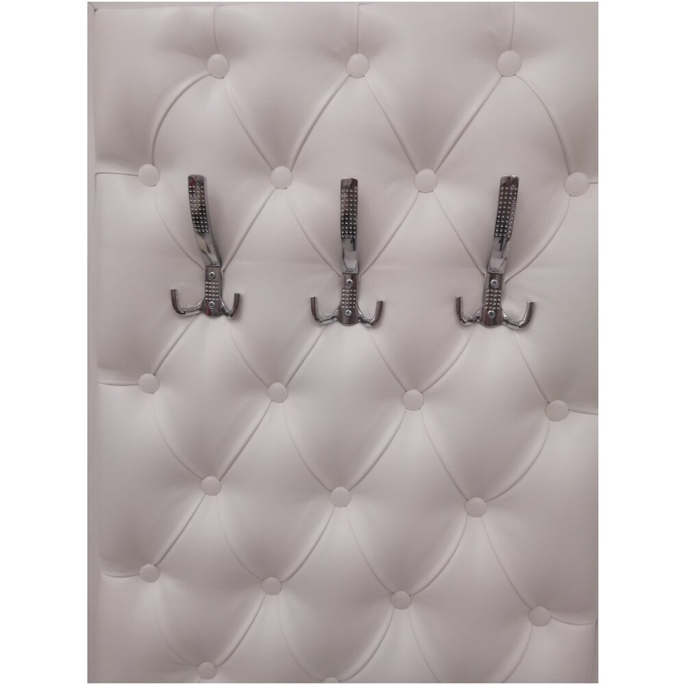 Вешалка с каретной стяжкой Элегант в деревянной раме белая экокожа