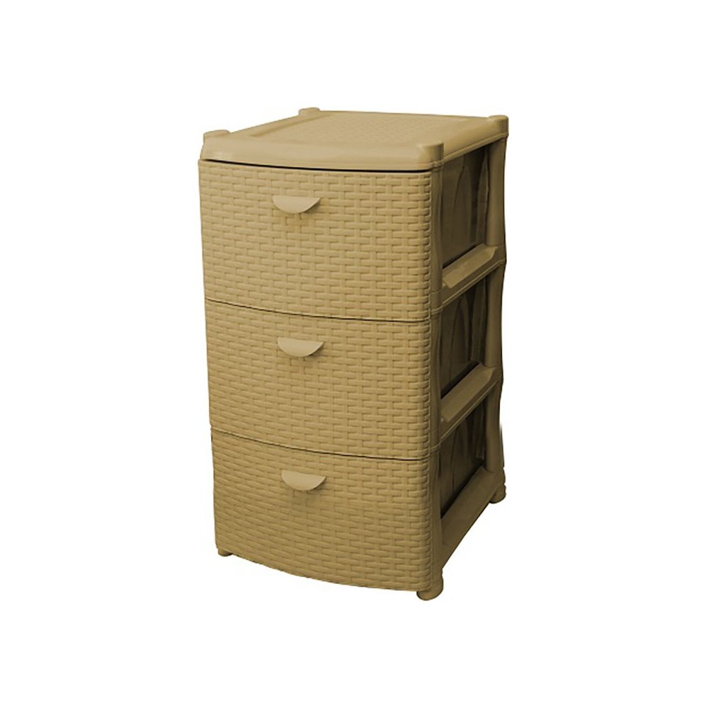 Комод Idea "Ротанг" изготовлен из высококачественного пластика. Ящики оформлены изображением плетеных элементов. Комод предназначен для хранения различных вещей и состоит из 3 вместительных выдвижных секций. Такой необычный и яркий комод надежно защитит вещи от загрязнений, пыли и моли, а также позволит вам хранить их компактно и с удобством.