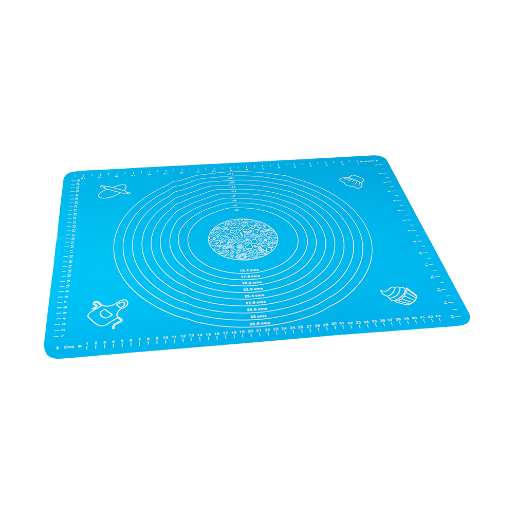 С силиконовым ковриком кухонный стол всегда будет оставаться чистым. Тесто можно раскатать прямо на коврике, не посыпая его мукой. Для того чтобы круглый корж получился нужного диаметра и выглядел аккуратно, на поверхность нанесены круги разного диаметра . Материал, из которого выполнено изделие, выдерживает температуру от –25 °С до 220 °С. Коврик можно использовать,для приготовления пищи в микроволновой печи, духовке (как газовой, так и электрической), а также для хранения уже приготовленных блюд в морозилке. Силиконовый коврик может вам пригодиться и в качестве анти-скользящего покрытия. Для того чтобы разделочные доски или чаши не скользили по поверхности стола, просто подложите под них силиконовый коврик для выпечки. Силиконовый коврик для раскатывания теста имеет специальную разметку из окружностей разного диаметра и мерные линейки по бокам.