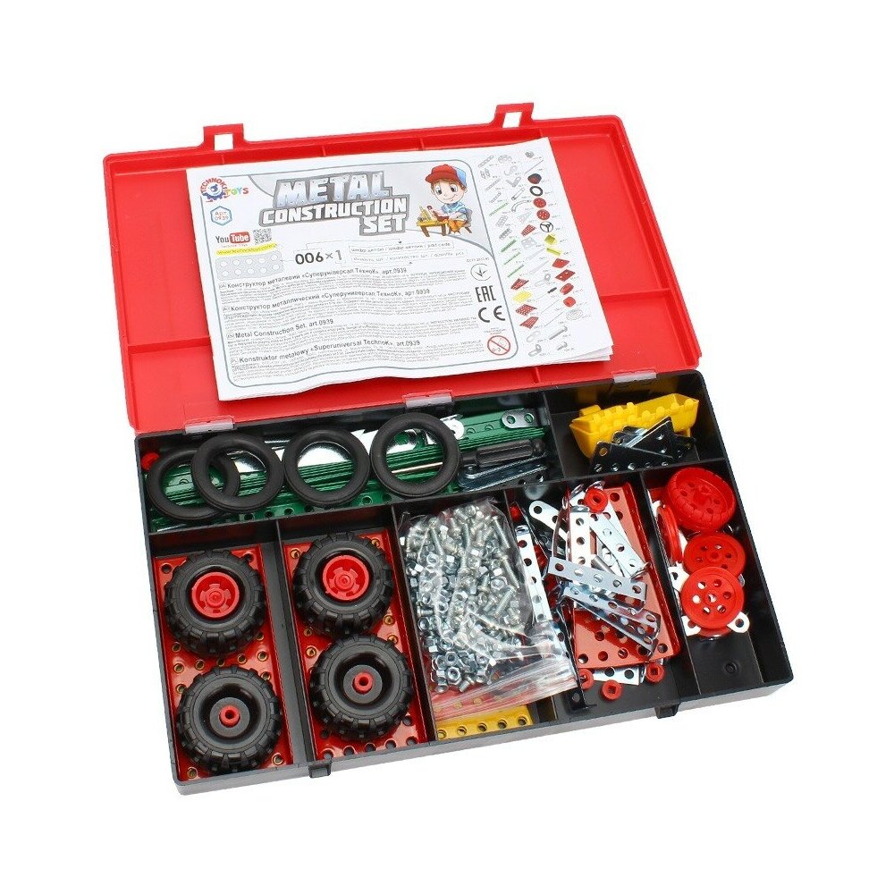 Конструктор из пластмассовых элементов с гайками и винтиками. Позволяет ребёнку получить практические навыки, понять как работают винтовые соединения деталей. Размеры: 33x27.5x5.5 см.