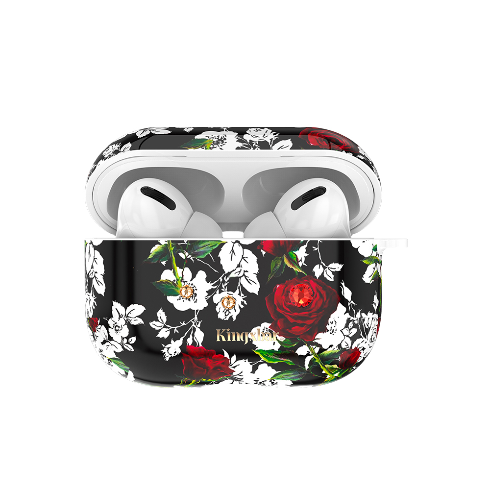 Чехол пластиковый Kingxbar для Airpods Pro (20), черный, розы, со шнурком