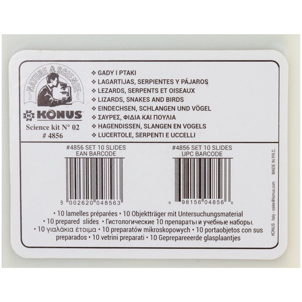Набор микропрепаратов Konus 10: «Ящерицы, змеи и птицы»