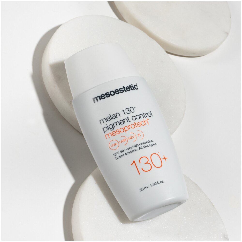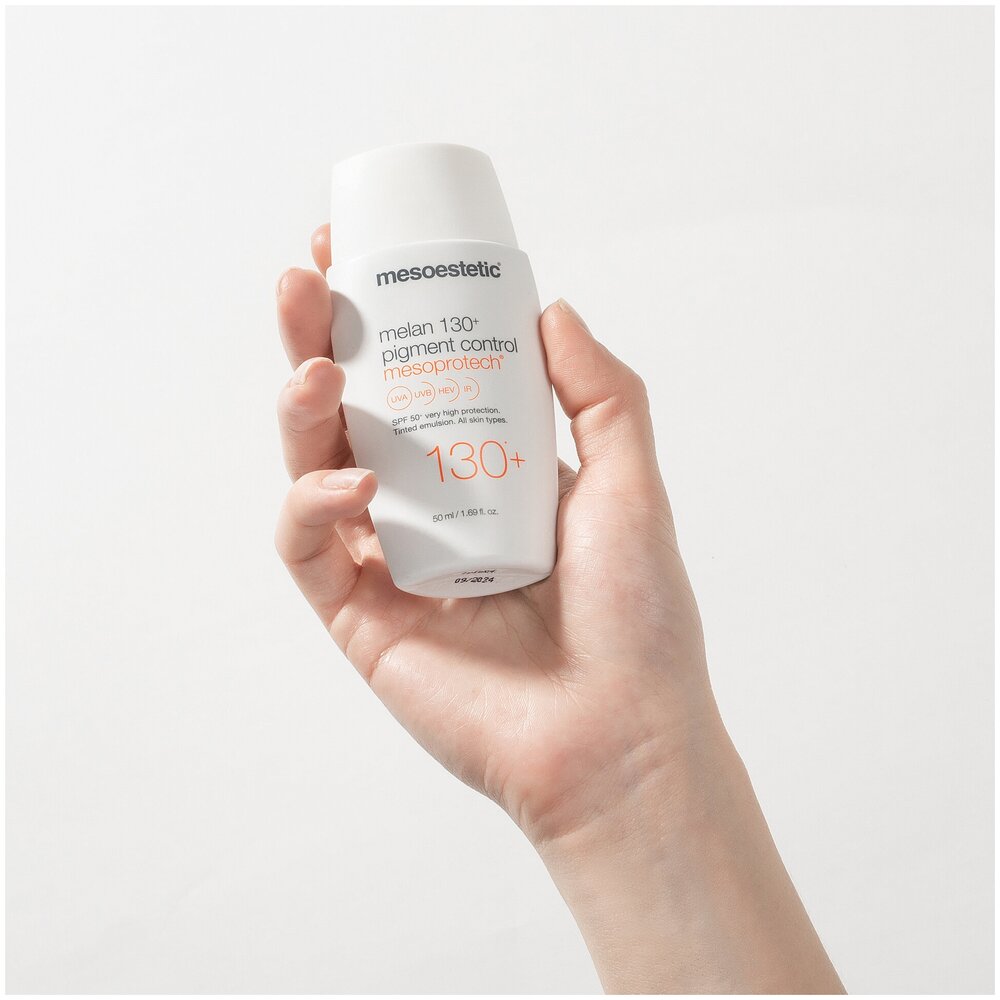 Профессиональный Тональный Cолнцезащитный крем с SPF 130+ Melan 130+ Pigment Control SPF 130, 50 мл, Mesoestetic
