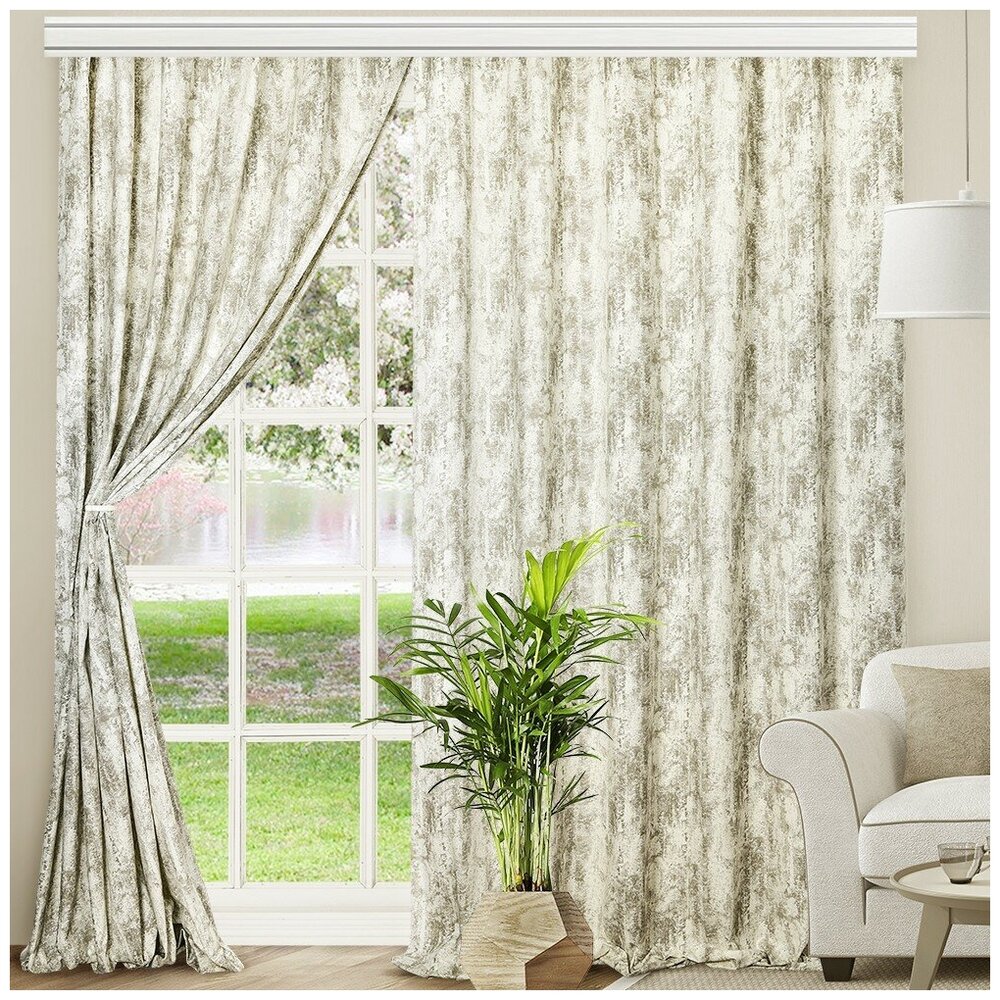Состав комплекта: шторы 180х270см - 2шт., подхваты 68х9 см - 2 шт. Широкая шторная лента (6см) подходит для всех типов карнизов, позволяет регулировать высоту и ширину штор и собирать красивые складки при помощи тесьмы. Изделия выполнены из натуральной ткани (100%хлопок). Рекомендуется деликатная стирка при 30°С, отпаривание на среднем режиме.