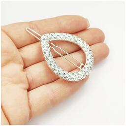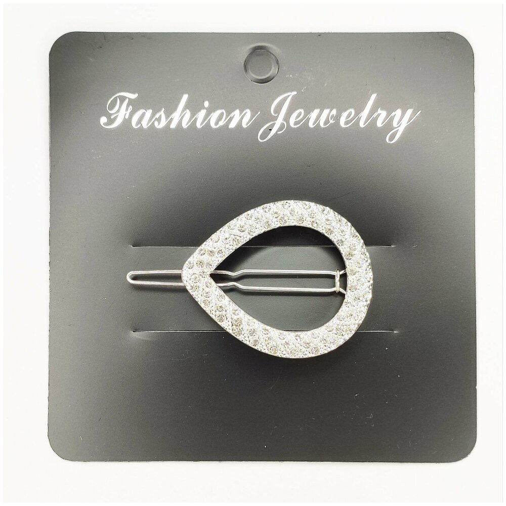 Заколка для волос, капелька серебристая со стразами, 1 шт.