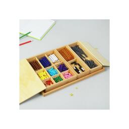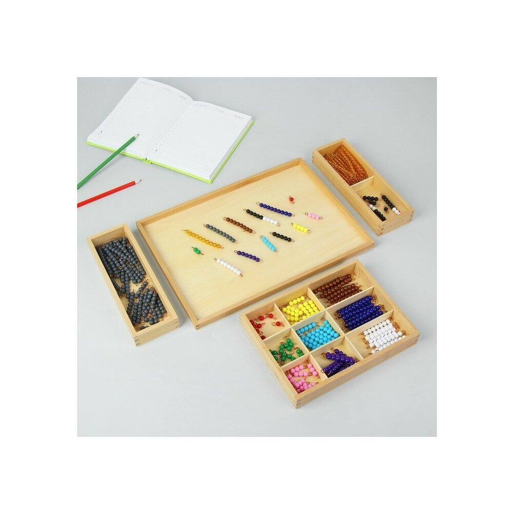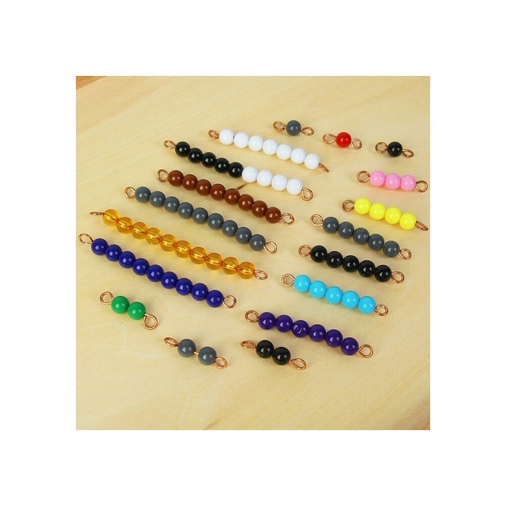 Психолог и педагог Мария Монтессори разработала уникальные материалы, которые послужат ребёнку инструментом для развития. Игровой набор состоит из множества стержней с бусинами разных цветов. Он ориентирован на изучение счёта и развития логического мышления у малышей. Благодаря большому количеству деталей комплект подходит для групповых занятий. Данный набор совместим с игрой по методике Монтессори «Подставка с крючками для бусин».