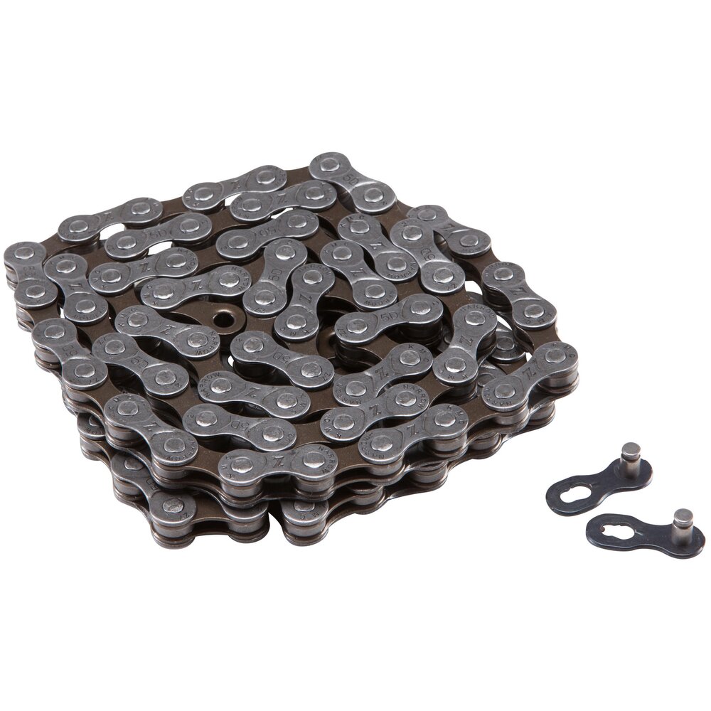 Цепь подходит для трансмиссии от трёх до 8 скоростей. Совместима с переключателями Shimano, SRAM и Campagnolo 3 -8 ск.Цепь разработана совместно с KMC - одним из ведущих производителей комплектующих для велосипедных трансмиссий. Цепь имеет 118 звеньев и 1 быстросъемный замок.Для цепей на 3-8 скоростей всех брендов.установка количество звеньев. 117 + 1 быстросъемный замок цепи = 118 звеньев. ВЕС 0,4 kg