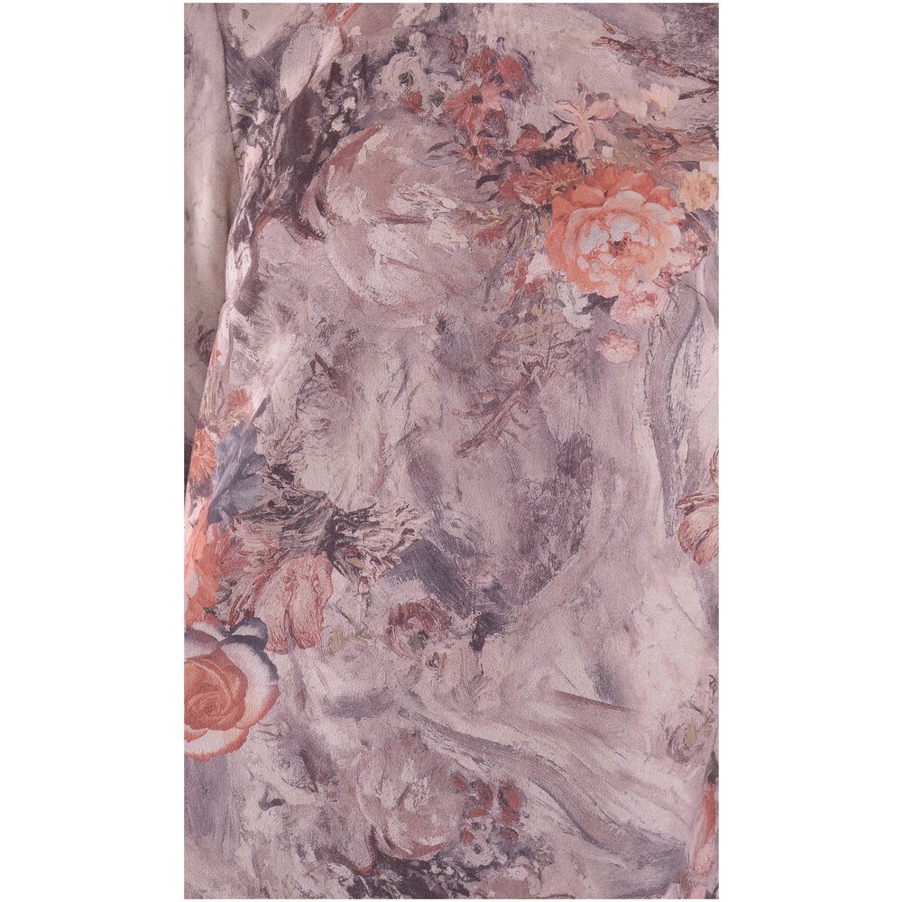 Женское платье-футляр приталенного силуэта, длиной до колена выполнена из полиэстера с добавлением спандекса. Оригинальный цветочный принт на ткани служит украшением. Модель дополнена рельефными талиевыми вытачками, неглубокой круглой горловиной, застёжкой на потайную молнию на спинке и втачным рукавом до локтя с защипами внизу.
