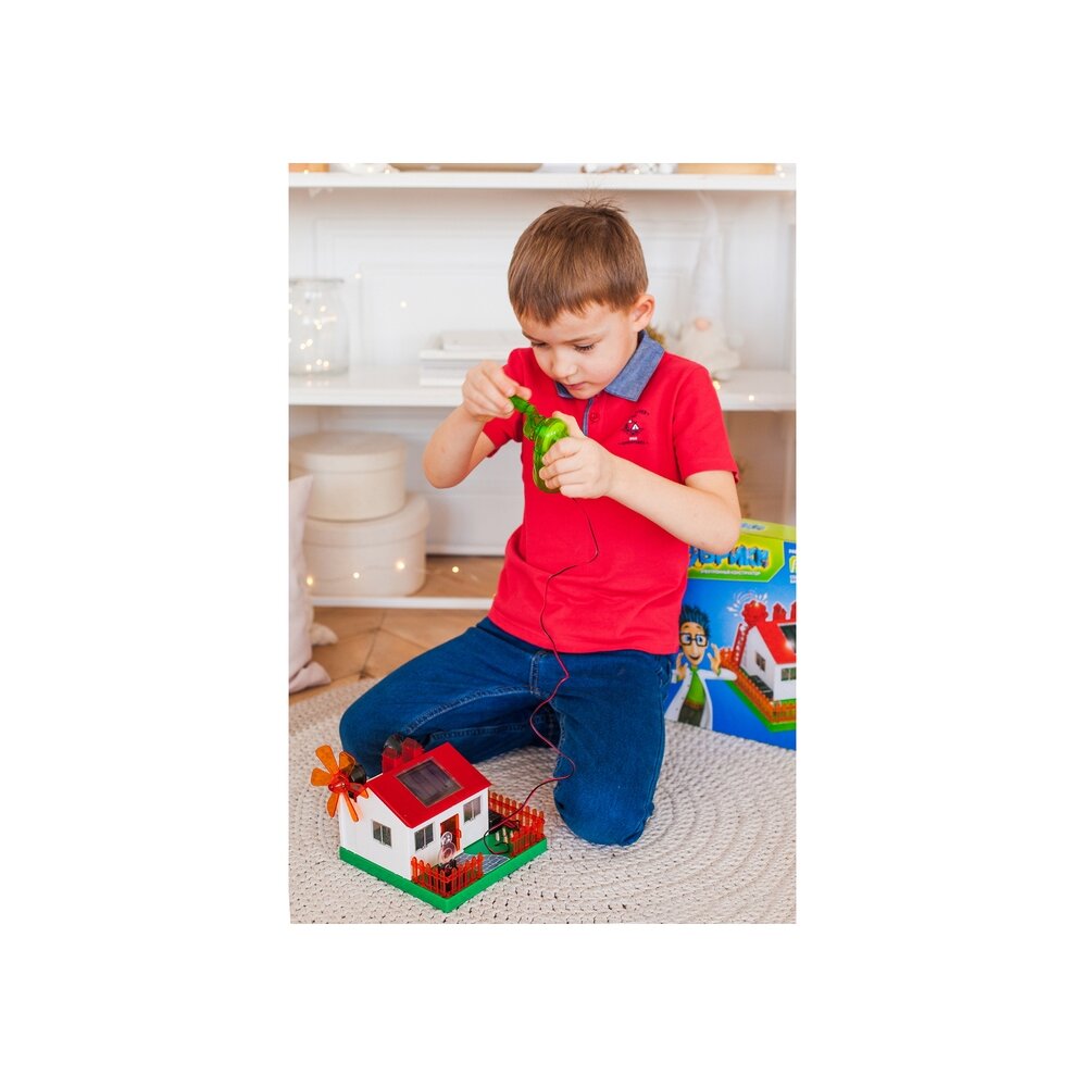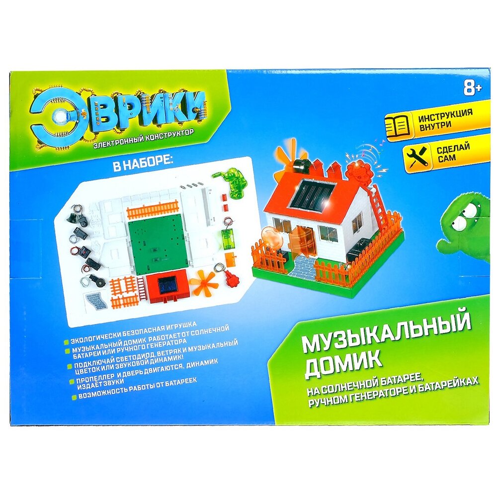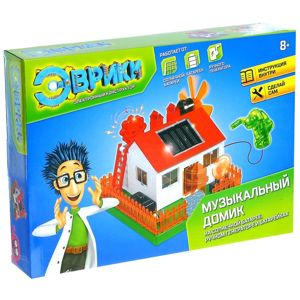 В чём уникальность?Удивите вашего будущего учёного необычной игрушкой! Яркая высококачественная модель станет отличным подарком. «Музыкальный домик» поможет узнать много интересного, познакомит с современной механикой и электроникой. Игра сопровождается световыми и звуковыми эффектами: к милому домику можно подключить светодиод и динамик.Выбирайте из 3 источников энергии!Музыкальный домик функционирует от солнечной батареи, от ручного генератора, а также от батареек. Выбирайте источник энергии по вкусу! Это отличный способ познакомить ребёнка с удивительными и экологически чистыми источниками электричества.Учимся играя!Сборка домика поможет в развитии мелкой моторики, логики, мышления и воображения. А в процессе увлекательной игры маленький исследователь познакомится с принципом работы электричества, узнает, как функционирует солнечная панель и ручной генератор. Ваш ребёнок будет в восторге!Играйте и развивайтесь с «Эврики»!