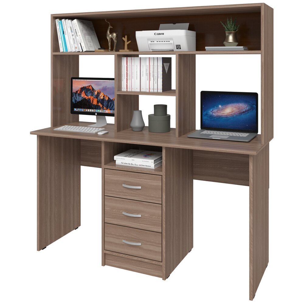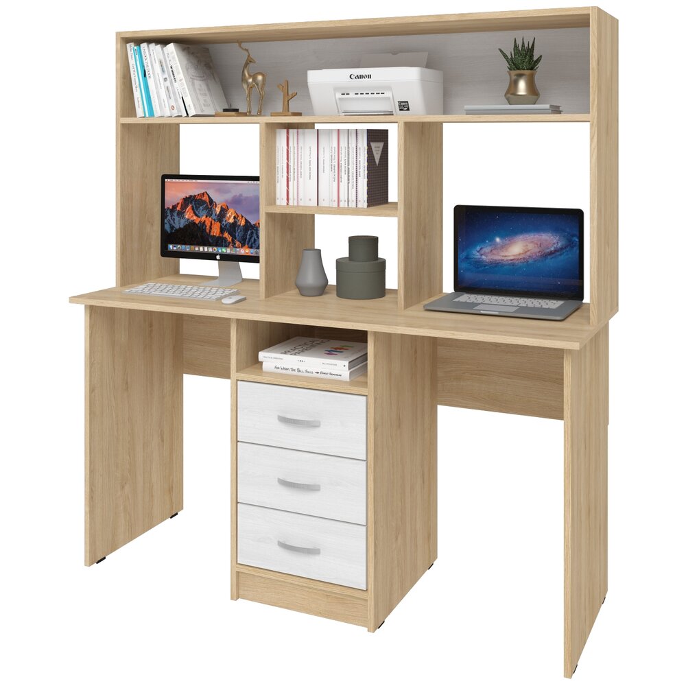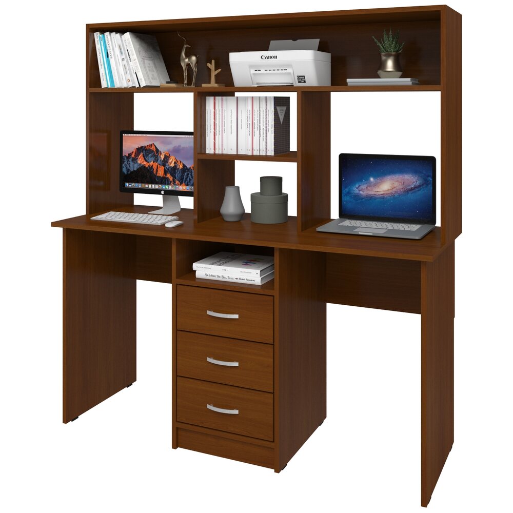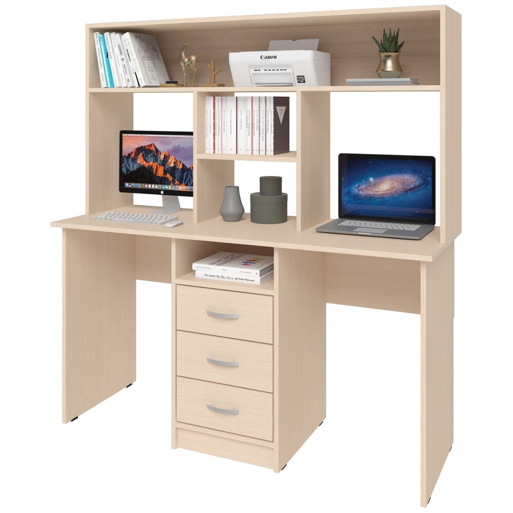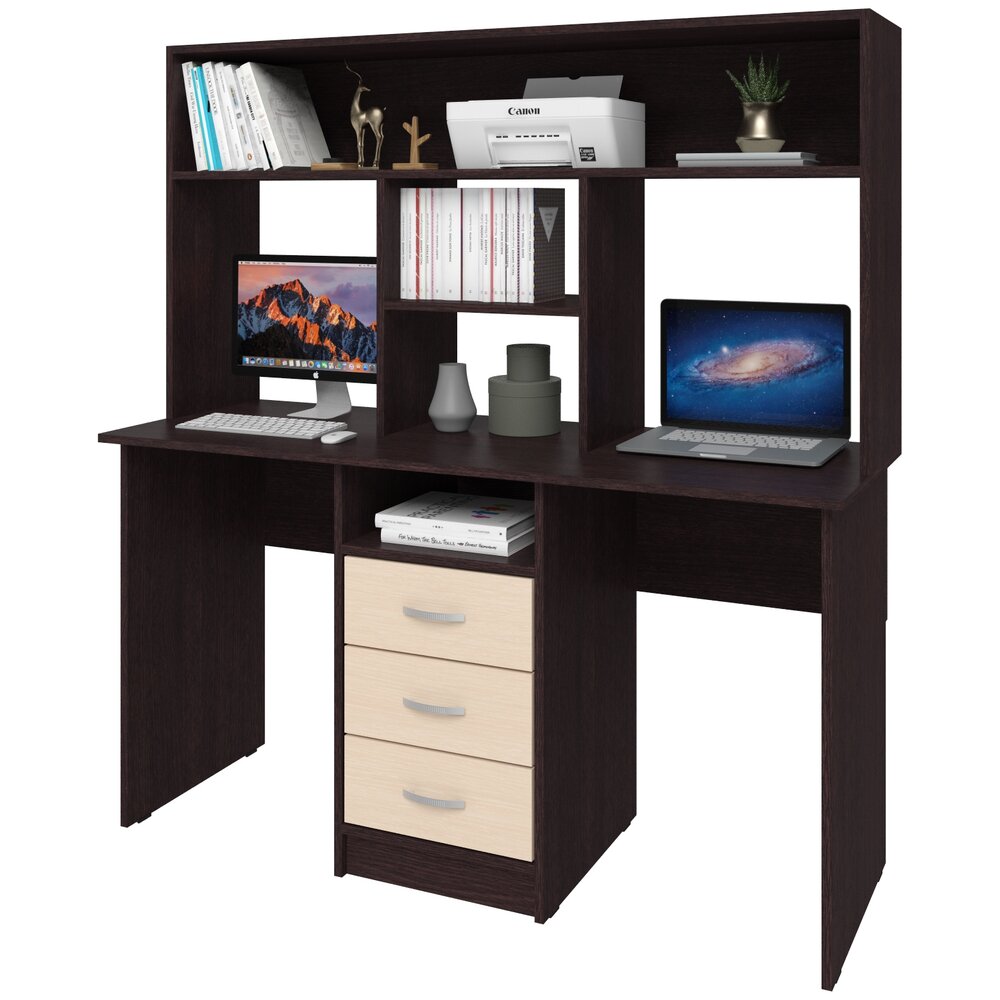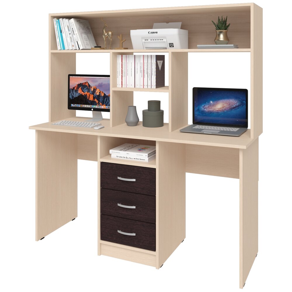 Письменный стол СитиМебель на два рабочих места с 3 ящиками и надстройкой, ШхГ: 180х50 см, цвет: вишня оксфорд/дуб молочный