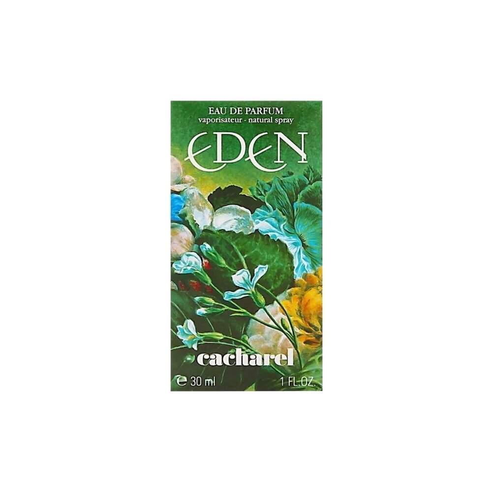 Eden Cacharel — это аромат для женщин, который принадлежит к группе цветочных ароматов. Eden выпущен в 1994 году, парфюмер: Jean Guichard. Верхние ноты: мандарин, персик, бергамот, лимон. Ноты сердца: мимоза, ананас, тубероза, дыня, цветок граната, жасмин, водяная лилия, ландыш, лотос и роза. Ноты базы: сандал, бобы тонка, пачули, акация и кедр.