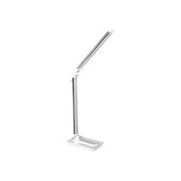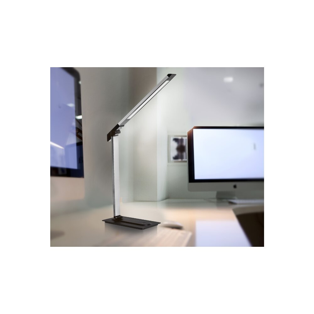 "Стильный дизайн светильника Camelion KD-846 украсит интерьер, оформленный в любом стиле. Плафон и стойка светильника изготовлены из алюминия, а основание -из прочного ABS-пластика. При транспортировке и хранении светильник может быть компактно сложен. Тип установки светильника : на основание. После установки светильника на стол возможно регулировать наклон стойки и наклон плафона. Источник света – светодиоды 2-х температур свечения интегрированные в плафон светильника, позволяющие иметь 3 режима цветовой температуры (3000, 4500, 6000 К). Применение разных цветовых температур свечения позволяет создать комфортную атмосферу для работы, учебы или отдыха. Три ступени регулировки яркости. Мощность- 8 Вт. Максимальный световой поток 400 лм. На основании светильника расположена одна сенсорная кнопка управления светом: вкл/выкл, плавное изменение яркости, изменение цветовой температуры. Регулируемая функция будет зависеть от способа воздействия на кнопку- кратковременное или длительное нажатие."