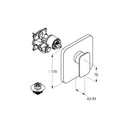 встраиваемый смеситель для душа; внешняя монтажная часть; литой рычаг; керамический картридж с ограничителем горячей воды; класс расхода воды DC; Монтаж на стену; Требуется: Скрытая часть 88 011
