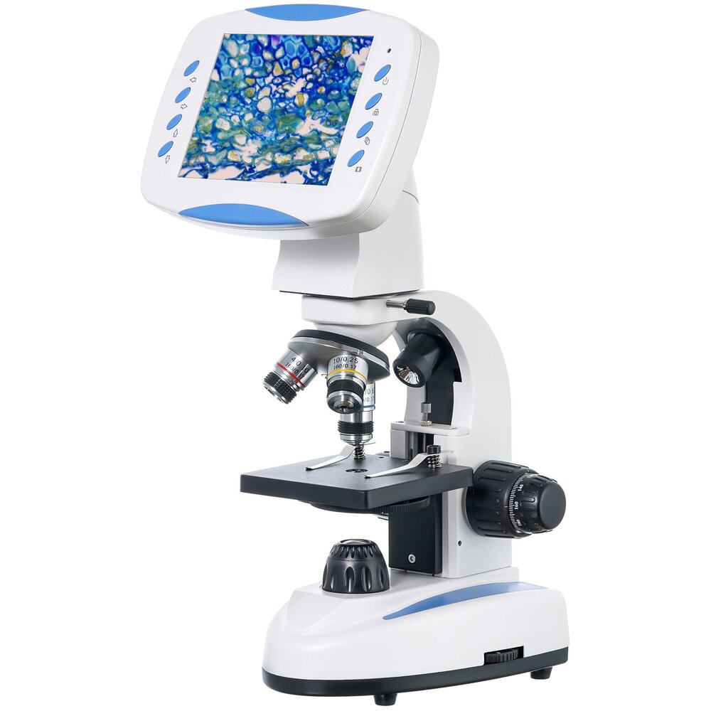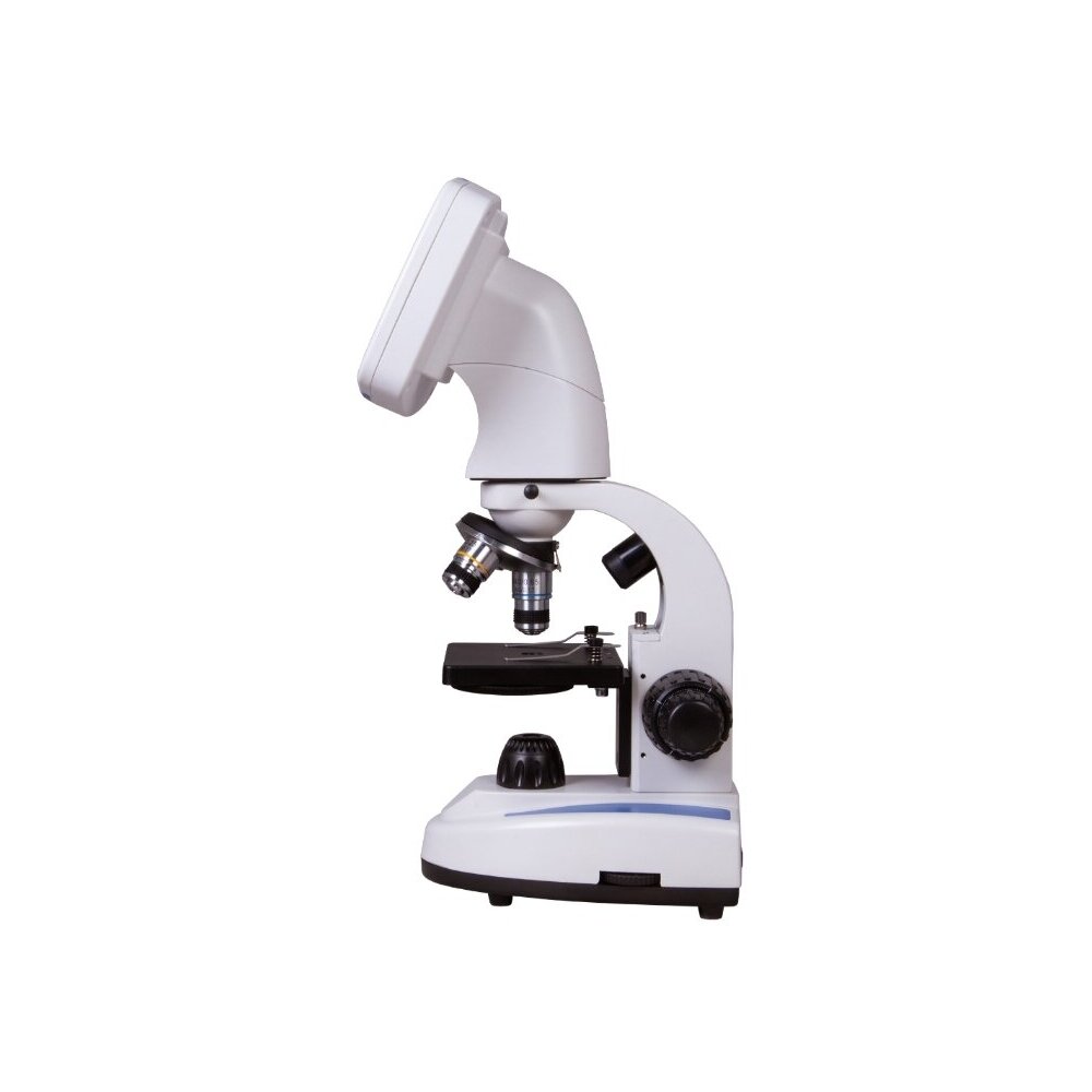 Levenhuk D80L LCD – это цифровой микроскоп с камерой 2 Мпикс и ЖК-экраном. Микроскоп можно использовать для визуальных наблюдений и создания фото- и видеоархивов. Картинка на экран передается в режиме реального времени, ее можно сохранять на карту памяти или передавать на внешние устройства. Микроскоп подходит для изучения в светлом поле прозрачных, полупрозрачных и непрозрачных образцов.<br /> Вместо классической окулярной насадки здесь установлена насадка с экраном. Это более комфортный для длительных наблюдений вариант, так как снижается нагрузка на зрение и мышечный корсет. Микроскопы с ЖК-экраном выбирают не только для дома, но и для лаборатории. Рядом с экраном находятся кнопки управления цифровой камерой, на задней стенке – разъемы для карты памяти, источника питания и других устройств.<br /> Цифровая камера работает в тандеме с ахроматическими объективами, общая кратность микроскопа составляет от 60 до 600 крат. Предметный столик снабжен классическими зажимами, подсветка расположена сверху и снизу – ее яркость регулируется. Прямо под столиком находится конденсор с диском с диафрагмами, который используется для более точной настройки освещения.<br /> Все оптические элементы микроскопа сделаны из стекла, корпус – из металла.